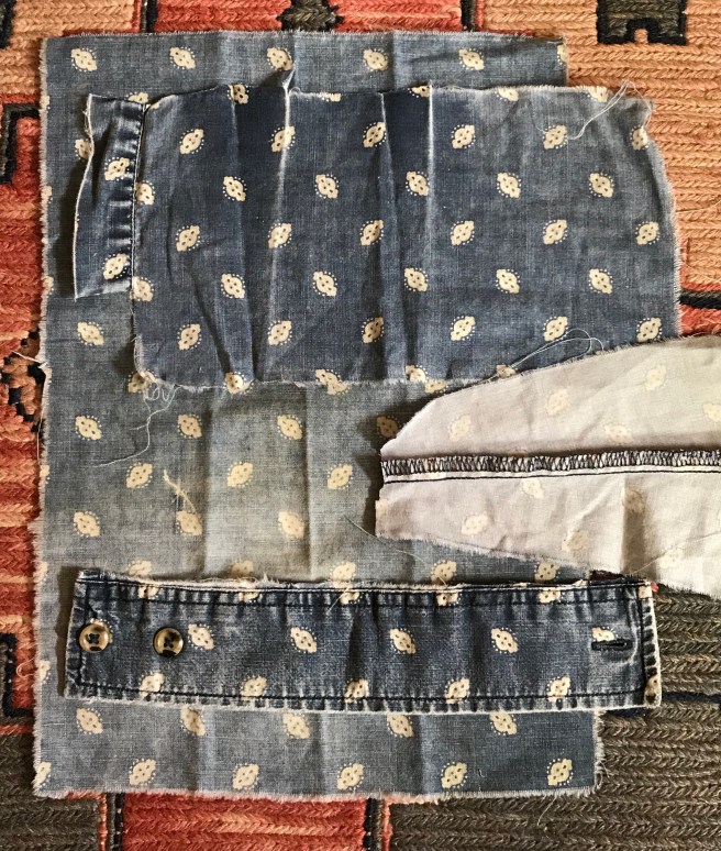 Oh don’t cut the christening gown! Just a visceral reaction. But what you have cut has the energy of time passed, cloth worn, the wearer — the beauty of using your mom’s shirt. And as others have said, the bringing of the generations together with a seam is very special.