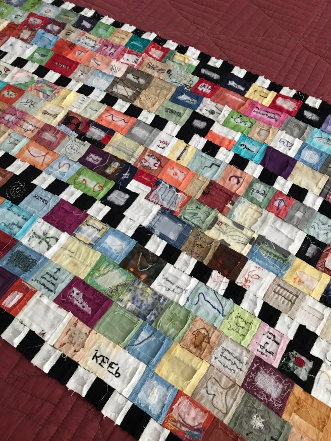 Your quilt holds the color of life and I can just imagine seeing it in all of its glory, side A, side B, hidden, tucked under flannel but still, it is there to be felt. Holding healing thoughts for your eye surgery; may it all go smoothly but know that while your eyes may not see as sharply or clearly as they should, your creative vision has always been clear, strong, inspiring, beautiful and wondrous.