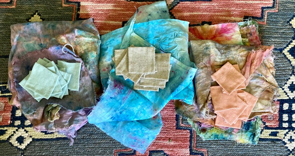 your comment made me think back eight years, to when I first encountered Jude Hill’s Spirit Cloth and began to go to the Wimberley thrift store to find linen clothing that I could deconstruct and use for stitching … since then, my “pantry” has grown to include hand-dyed cloth in a rainbow of colors, none better than Deb Lacativa’s … that said, I would like to make more of my own with Inktense, hopefully sooner rather than later