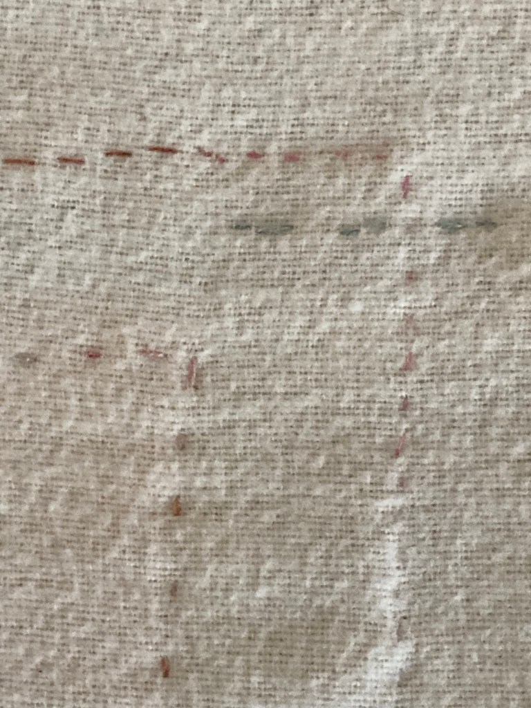 Addendum: close-up shots of the not-so-invisible baste stitches … Jude Hill’s glue stitch worked with a single strand of floss to form stars