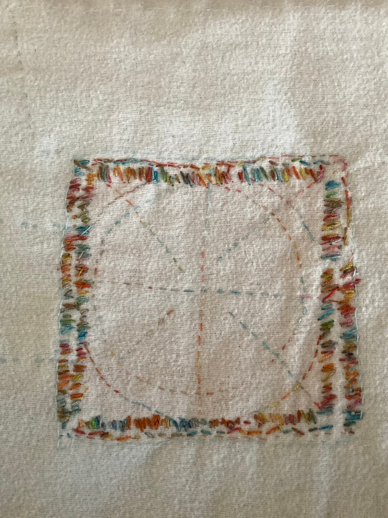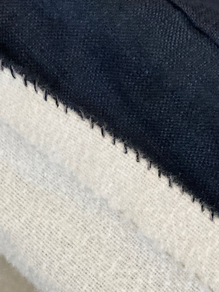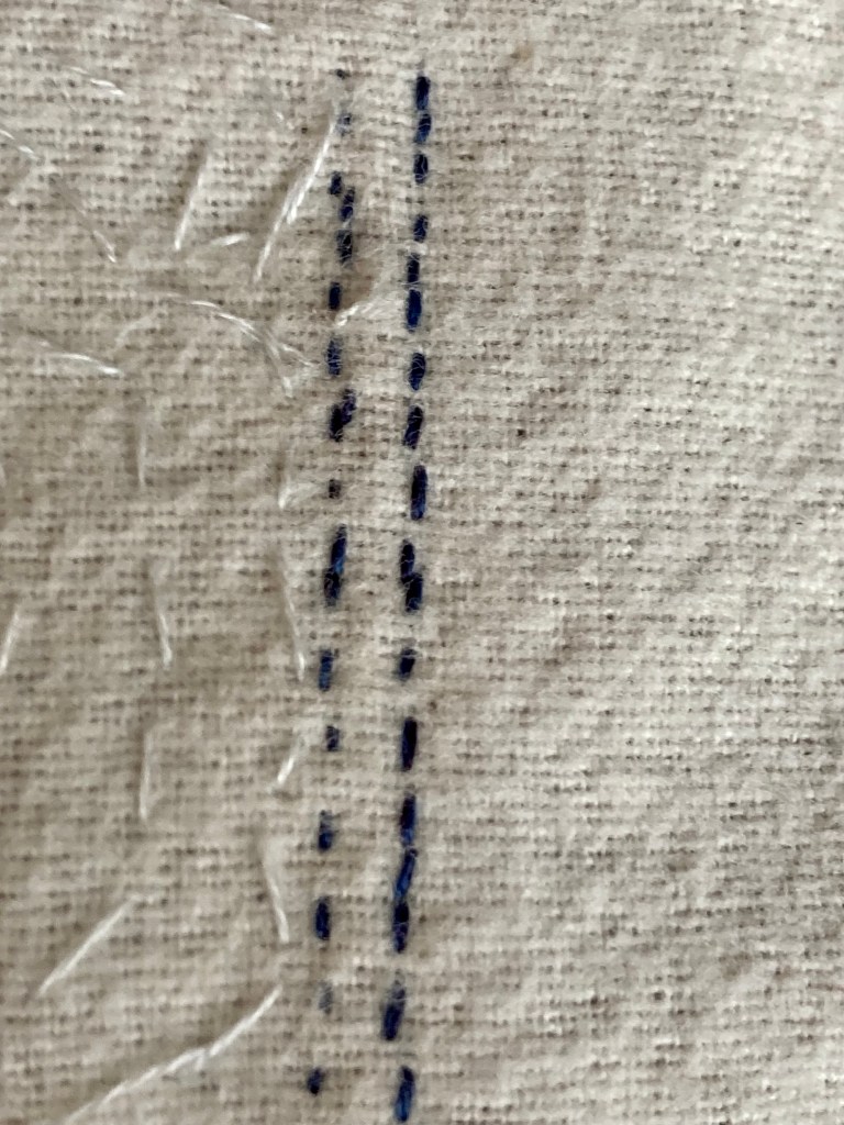 Today I’m finishing the raw edges of the small Glennis moons using an overlapping cross stitch, aka closed herringbone …