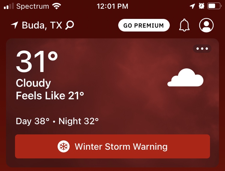 I made a three-day batch of chili stew, so we are set for the duration of the freeze … temps in the 60s are forecast for the weekend, so we’ll probably be grilling out by then