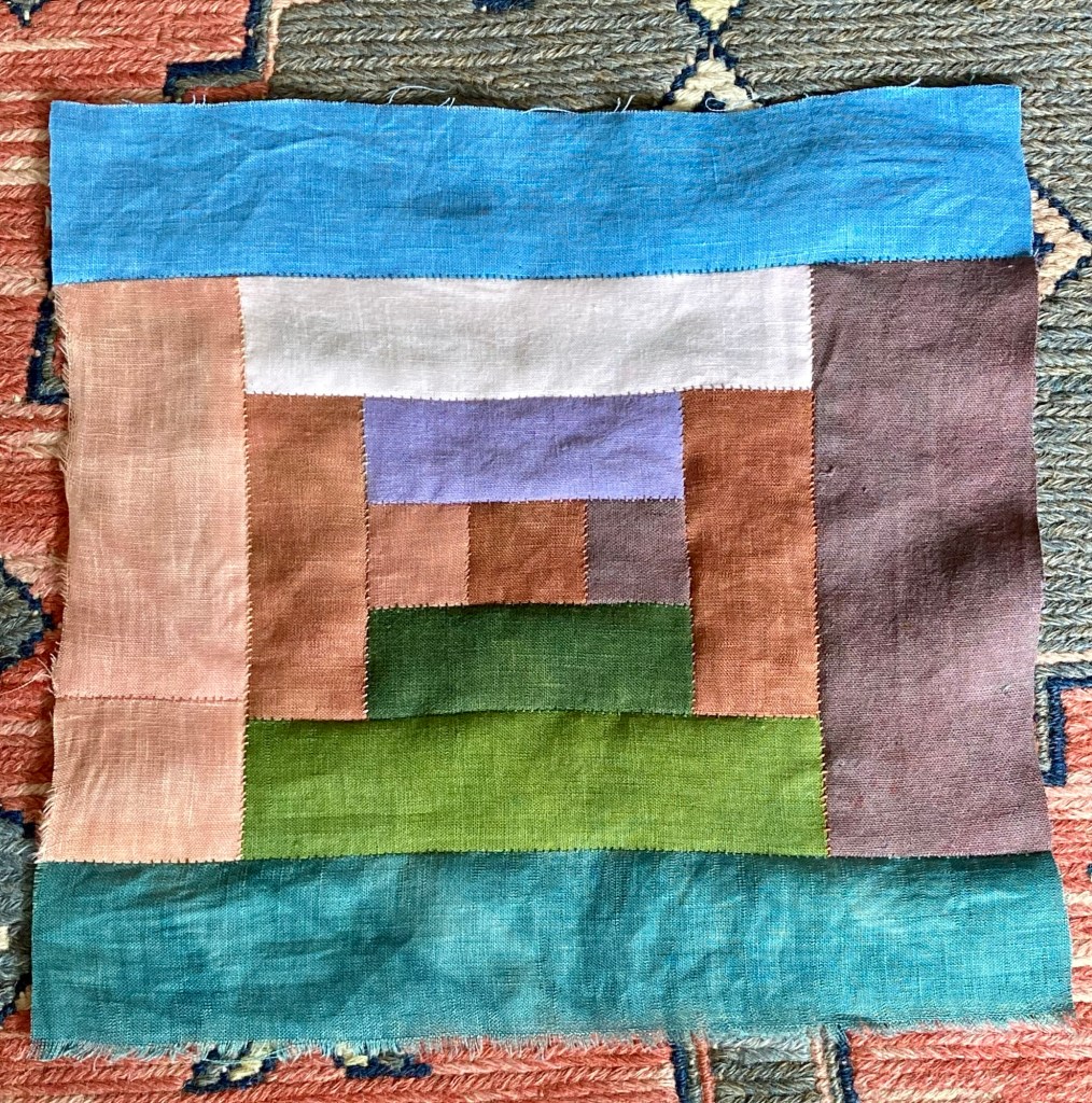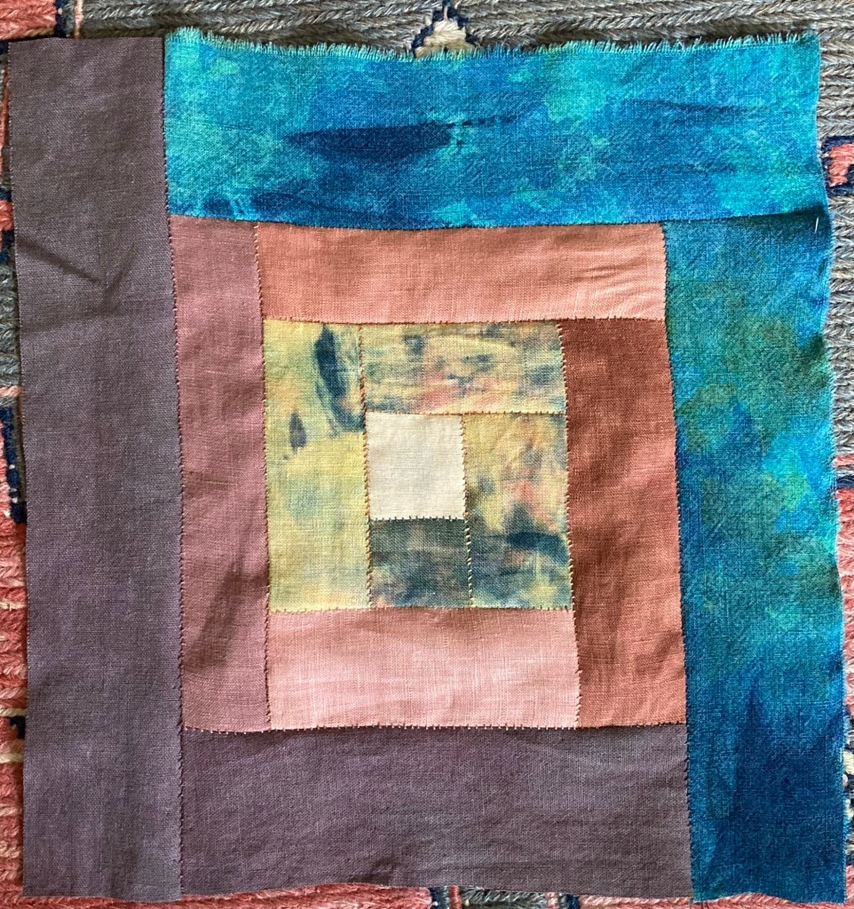By the way, in addition to the logwood, the blue/green strips and mottled yellow strips were also dyed and gifted by Connie. Lucky me!